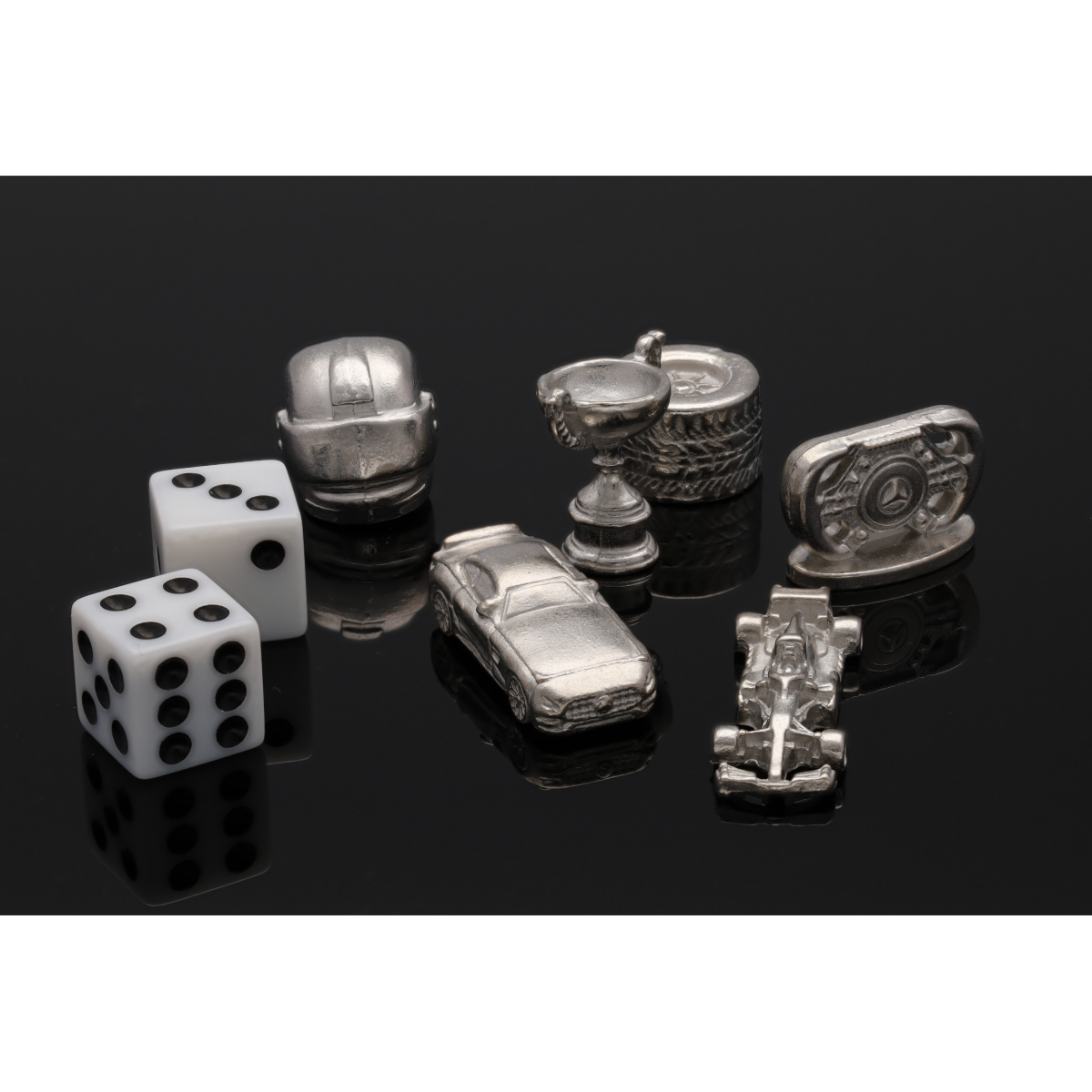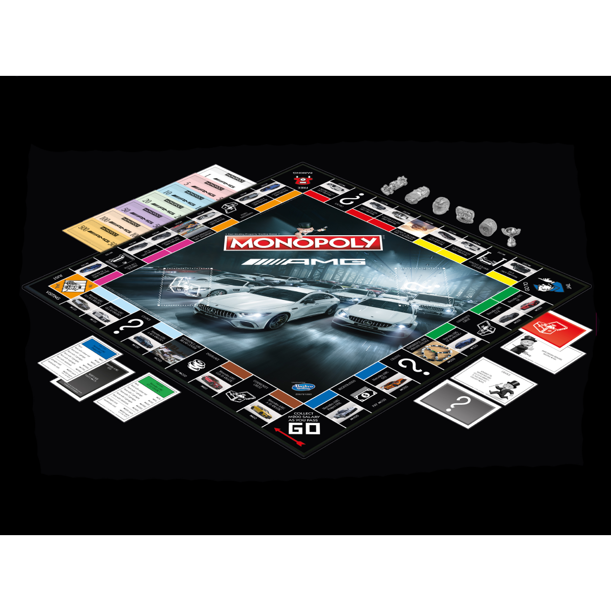 Brettspielklassiker neu aufgelegt: Das englischsprachige, individualisierte Monopoly verspricht mit einem Spielfeld im Mercedes-AMG Design sowie sechs speziell entwickelten Spielfiguren Spielspaß in der Mercedes-AMG Welt. Garagen aus der Boxengasse sowie Rennstrecken statt Häuser und Hotels machen das kurzweilige Vergnügen perfekt. Wie das original Monopoly Spiel ist auch die Mercedes-AMG Version für Spieler ab 12 Jahren geeignet. Das Spiel befindet sich in einem extra gestalteten Karton und eignet sich auch optimal als Geschenk.